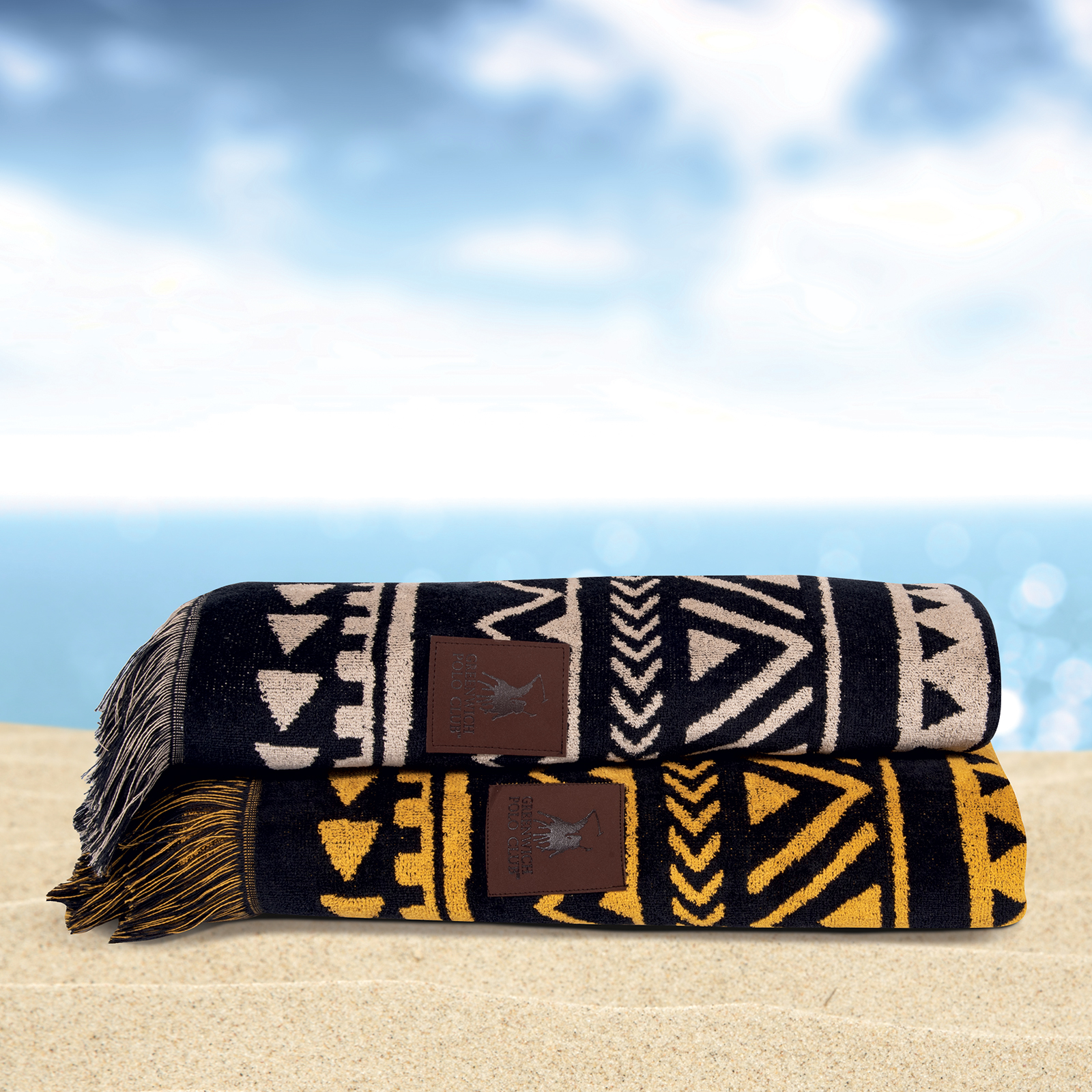Πετσέτα Θαλάσσης Greenwich Polo Club σε διάσταση 90Χ170εκ. Είναι υποαλλεργική, απαλή, απορροφητική και ανθεκτική στη χρήση. Η σύνθεσή της είναι από 100% βαμβάκι σε ύφανση jacquard και βάρος 400gr/m2. Επιλέξτε Πετσέτες Θαλάσσης Greenwich Polo Club σε μοντέρνα σχέδια και χρώματα για τις εμφανίσεις σας στην παραλία.
