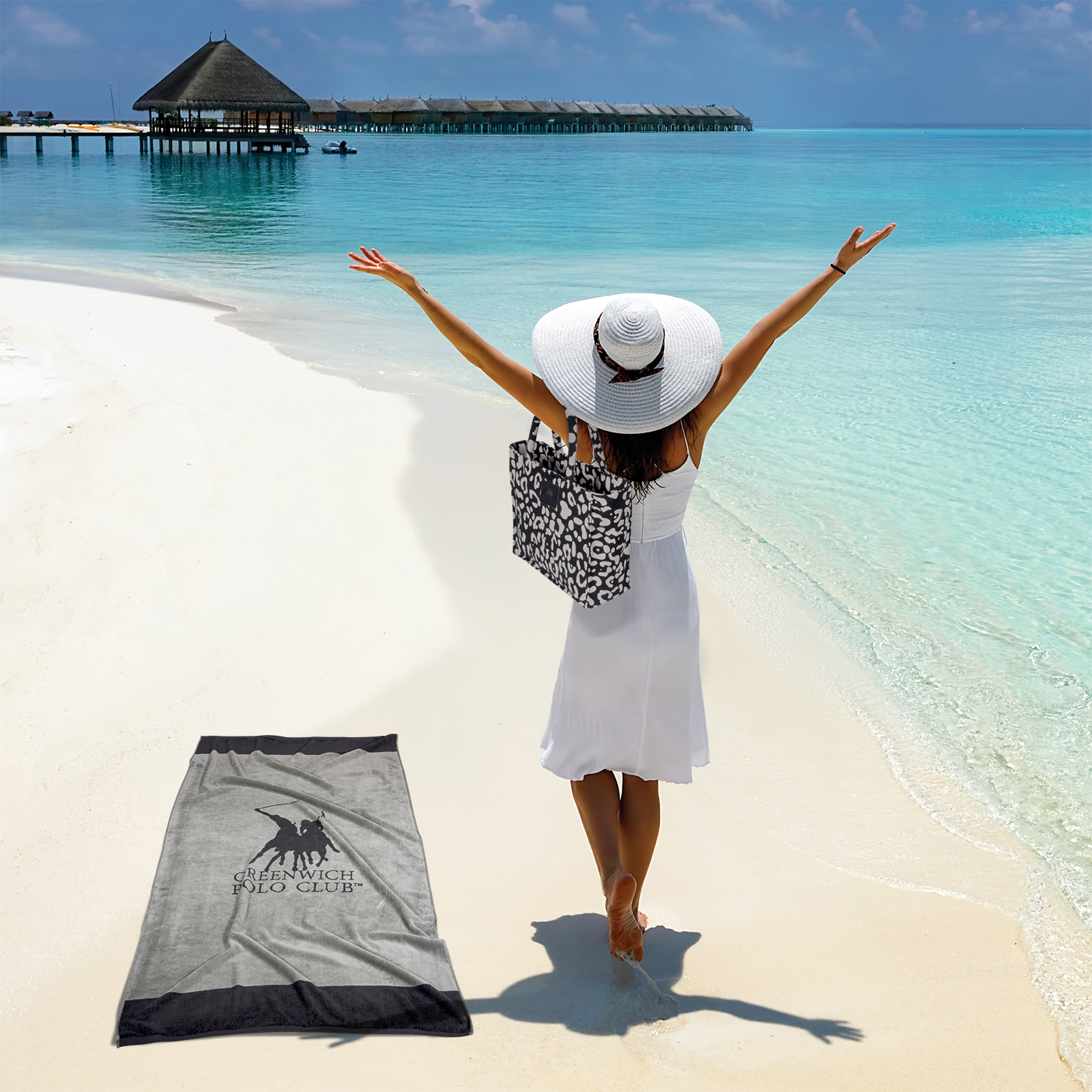 Πετσέτα Θαλάσσης Greenwich Polo Club σε διάσταση 90Χ170εκ. Είναι υποαλλεργική, απαλή, απορροφητική και ανθεκτική στη χρήση. Η σύνθεσή της είναι από 100% βαμβάκι σε ύφανση jacquard και βάρος 400gr/m2. Επιλέξτε Πετσέτες Θαλάσσης Greenwich Polo Club σε μοντέρνα σχέδια και χρώματα για τις εμφανίσεις σας στην παραλία.