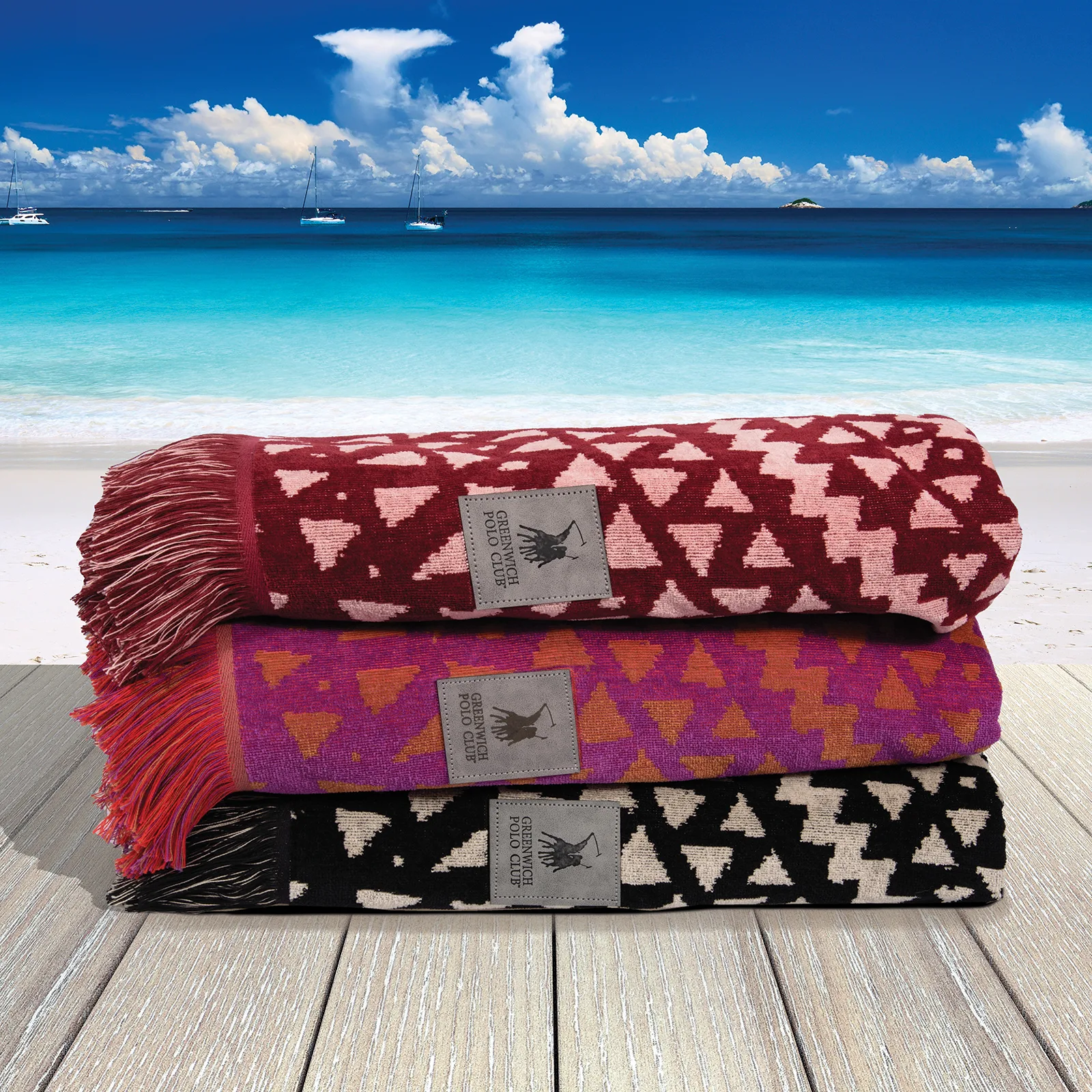 Πετσέτα Θαλάσσης Greenwich Polo Club σε διάσταση 90Χ180εκ. Είναι υποαλλεργική, απαλή, απορροφητική και ανθεκτική στη χρήση. Η σύνθεσή της είναι από 100% βαμβάκι σε ύφανση jacquard και βάρος 400gr/m2. Επιλέξτε Πετσέτες Θαλάσσης Greenwich Polo Club σε μοντέρνα σχέδια και χρώματα για τις εμφανίσεις σας στην παραλία.