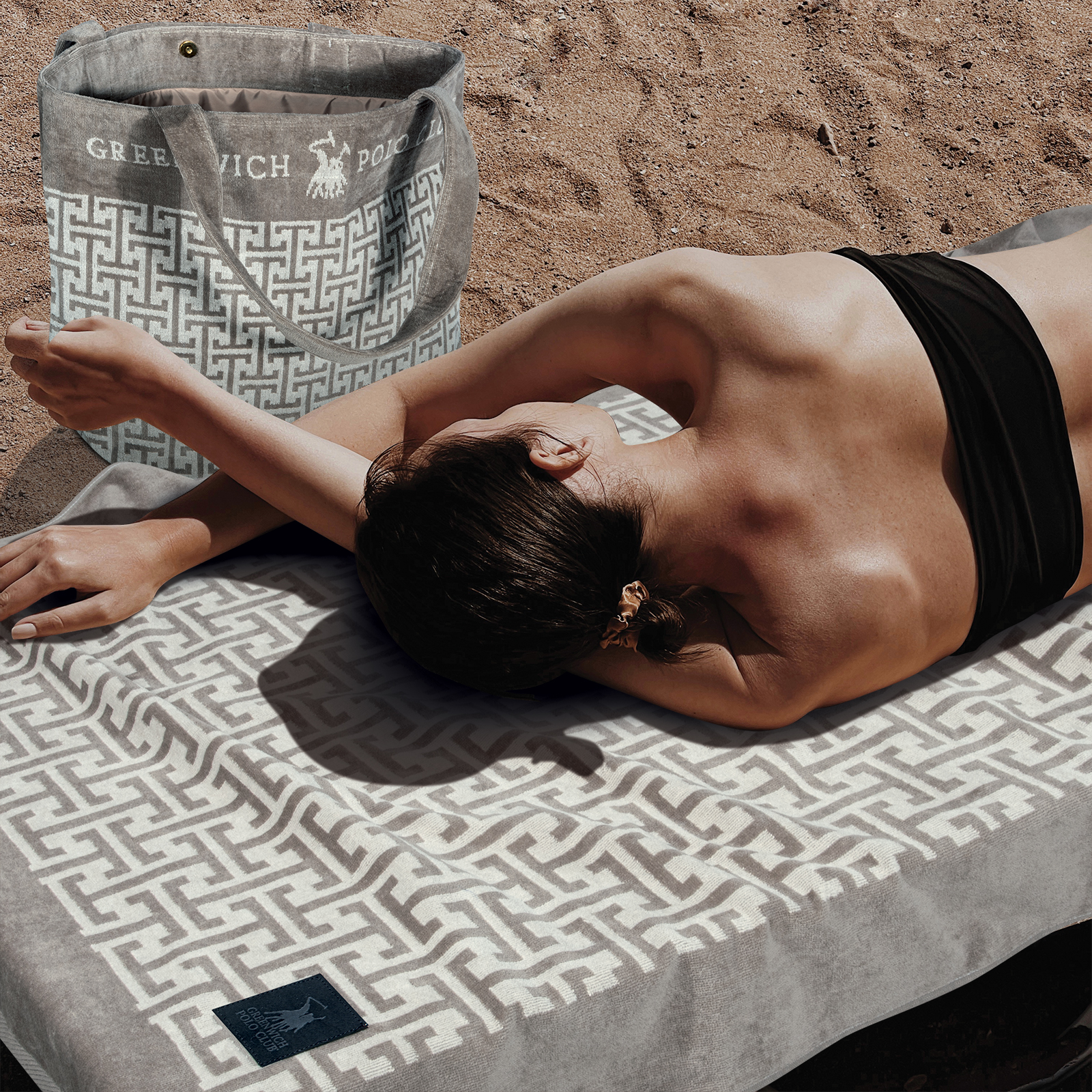 Πετσέτα Θαλάσσης Greenwich Polo Club σε διάσταση 90Χ180εκ. Είναι υποαλλεργική, απαλή, απορροφητική και ανθεκτική στη χρήση. Η σύνθεσή της είναι από 100% βαμβάκι σε ύφανση jacquard και βάρος 400gr/m2. Επιλέξτε Πετσέτες Θαλάσσης Greenwich Polo Club σε μοντέρνα σχέδια και χρώματα για τις εμφανίσεις σας στην παραλία.