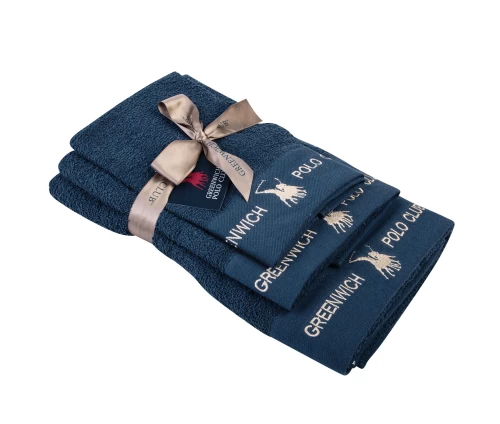 Σετ πετσέτες 3 τεμαχίων με κέντημα Greenwich Polo Club. Είναι απο 100% βαμβάκι υψηλής ποιότητας με βάρος 480gr/m2. Είναι ιδιαίτερα απαλές, απορροφητικές και ανθεκτικές, ενώ τα χρώματα που χρησιμοποιούνται είναι ανεξίτηλα και υποαλλεργικά. Το σετ αποτελείται από 3 πετσέτες σε διαστάσεις 30Χ50εκ., 50Χ90εκ. και 70Χ140εκ. Επιλέξτε Greenwich Polo Club για να απολαύσετε ποιότητα, στυλ και πολυτέλεια.