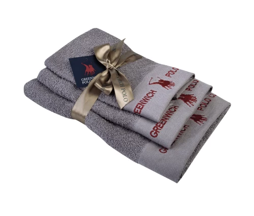 Σετ πετσέτες 3 τεμαχίων με κέντημα Greenwich Polo Club. Είναι απο 100% βαμβάκι υψηλής ποιότητας με βάρος 480gr/m2. Είναι ιδιαίτερα απαλές, απορροφητικές και ανθεκτικές, ενώ τα χρώματα που χρησιμοποιούνται είναι ανεξίτηλα και υποαλλεργικά. Το σετ αποτελείται από 3 πετσέτες σε διαστάσεις 30Χ50εκ., 50Χ90εκ. και 70Χ140εκ. Επιλέξτε Greenwich Polo Club για να απολαύσετε ποιότητα, στυλ και πολυτέλεια.