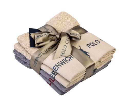 Σετ πετσέτες 4 τεμαχίων με κέντημα Greenwich Polo Club. Είναι απο 100% βαμβάκι υψηλής ποιότητας με βάρος 480gr/m2. Είναι ιδιαίτερα απαλές, απορροφητικές και ανθεκτικές, ενώ τα χρώματα που χρησιμοποιούνται είναι ανεξίτηλα και υποαλλεργικά. Το σετ αποτελείται από 4 πετσέτες διάστασης 30Χ50εκ. Επιλέξτε Greenwich Polo Club για να απολαύσετε ποιότητα, στυλ και πολυτέλεια.