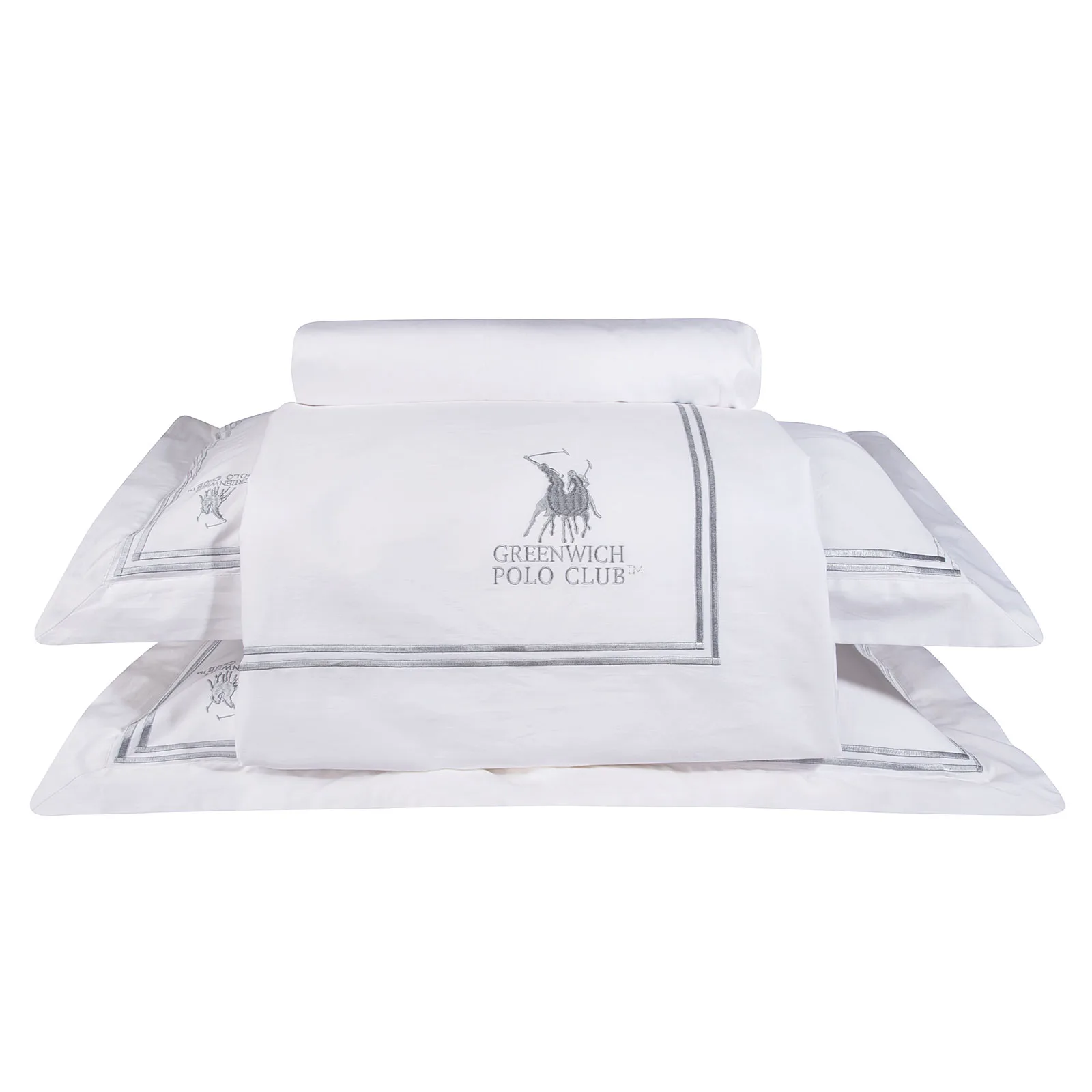 Σετ σεντόνια Greenwich Polo Club με κέντημα της σειράς Premium. Είναι από 100% βαμβάκι σατέν με πυκνότητα ύφανσης 210TC και με ειδική επεξεργασία για εύκολο σιδέρωμα. Το σετ αποτελείται από 2 σεντόνια διαστάσεων 280Χ270εκ και 2 μαξιλαροθήκες 50Χ70+7εκ με περιμετρική ραφή oxford. Αυτό που χαρακτηρίζει την συλλογή είναι οι απαλές αποχρώσεις, τα διακριτικά σχέδια και το διαχρονικό ύφος. Επιλέξτε Greenwich Polo Club για να απολαύσετε ποιότητα, στυλ και πολυτέλεια.