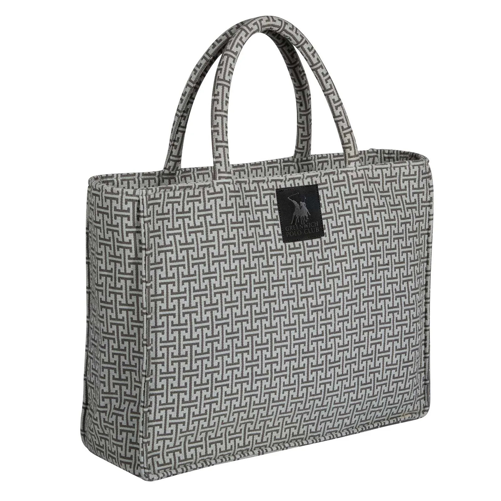 Τσάντα θαλάσσης Greenwich Polo Club σε διάσταση 46X36εκ. Η σύνθεσή της είναι 70% βαμβάκι και 30% pol., σε ύφανση jacquard, ενώ το εσωτερικό της ύφασμα είναι 100% pol. Επιλέξτε τσάντες θαλάσσης Greenwich Polo Club σε μοντέρνα σχέδια και χρώματα για τις εμφανίσεις σας στην παραλία.
