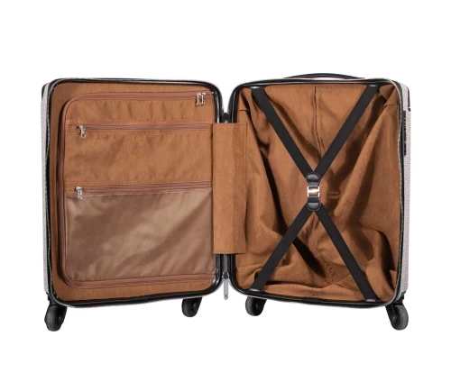 Βαλίτσα jacquard του οίκου Greenwich Polo Club. Είναι πολύ ανθεκτική και διαθέτει ενισχυμένες γωνίες από πολυπροπυλένιο. Επιπλέον διαθέτει 4 περιστρεφόμενες ρόδες και εσωτερικό τηλεσκοπικό μηχανισμό τρόλεϊ αλουμινίου. Εσωτερικά χωρίζει σε 2 ανεξάρτητα και ευρύχωρα διαμερίσματα, διαθέτει εσωτερικές θήκες, ιμάντες συγκράτησης και επένδυση suede. Διατίθεται σε διάσταση 55X41X22εκ. Επιλέξτε Greenwich Polo Club για να απολαύσετε ποιότητα, στυλ και πολυτέλεια.