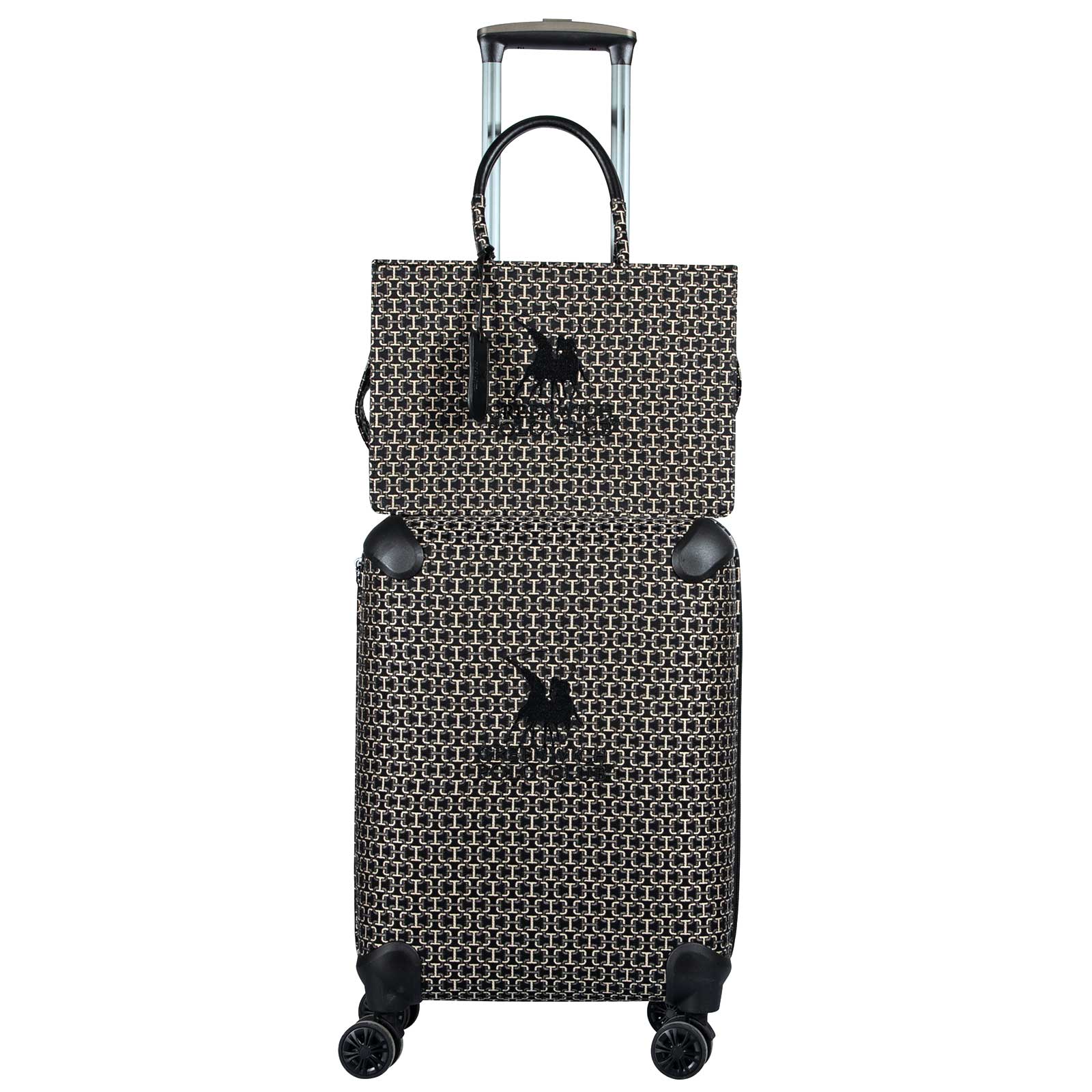 Βαλίτσα jacquard του οίκου Greenwich Polo Club. Είναι πολύ ανθεκτική και διαθέτει ενισχυμένες γωνίες από πολυπροπυλένιο. Επιπλέον διαθέτει 4 περιστρεφόμενες ρόδες και εσωτερικό τηλεσκοπικό μηχανισμό τρόλεϊ αλουμινίου. Εσωτερικά χωρίζει σε 2 ανεξάρτητα και ευρύχωρα διαμερίσματα, διαθέτει εσωτερικές θήκες, ιμάντες συγκράτησης και επένδυση. Διατίθεται σε διάσταση 56X38X22.5εκ. Επιλέξτε Greenwich Polo Club για να απολαύσετε ποιότητα, στυλ και πολυτέλεια.