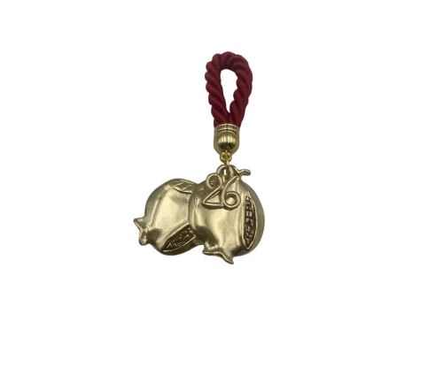 Το γούρι διπλό ρόδι 26 Φυσαλίς είναι 100% χειροποίητο ελληνικό δημιούργημα. Ο συνδυασμός των δύο ροδιών με το διακριτικό στοιχείο “26” δίνει μια σύγχρονη πινελιά στο παραδοσιακό σχέδιο, κάνοντας το ιδανικό για τη χριστουγεννιάτικη διακόσμηση ή ως δώρο για το νέο έτος.