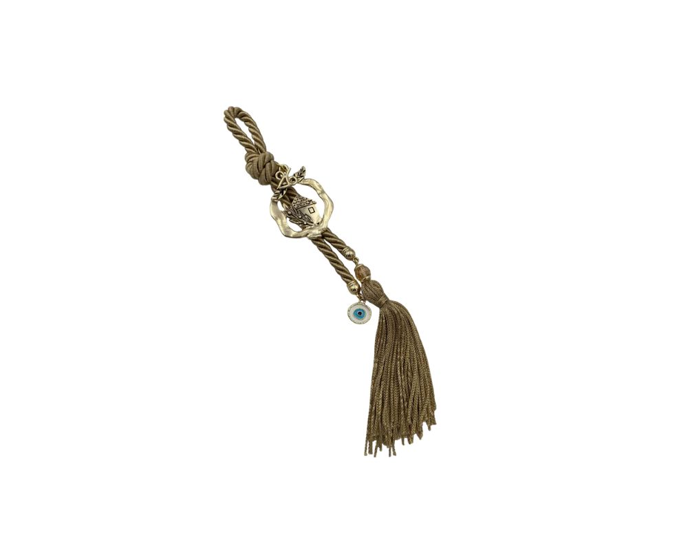 Το γούρι με ρόδι και σπιτάκι Φυσαλίς είναι ένα 100% χειροποίητο ελληνικό δημιούργημα, κατασκευασμένο από μεταλλικά στοιχεία και κορδόνι σε γήινες αποχρώσεις. Ο συνδυασμός των δύο συμβόλων δημιουργεί ένα όμορφο και καλαίσθητο σύνολο, κατάλληλο για τη γιορτινή διακόσμηση ή ως δώρο για το νέο έτος.