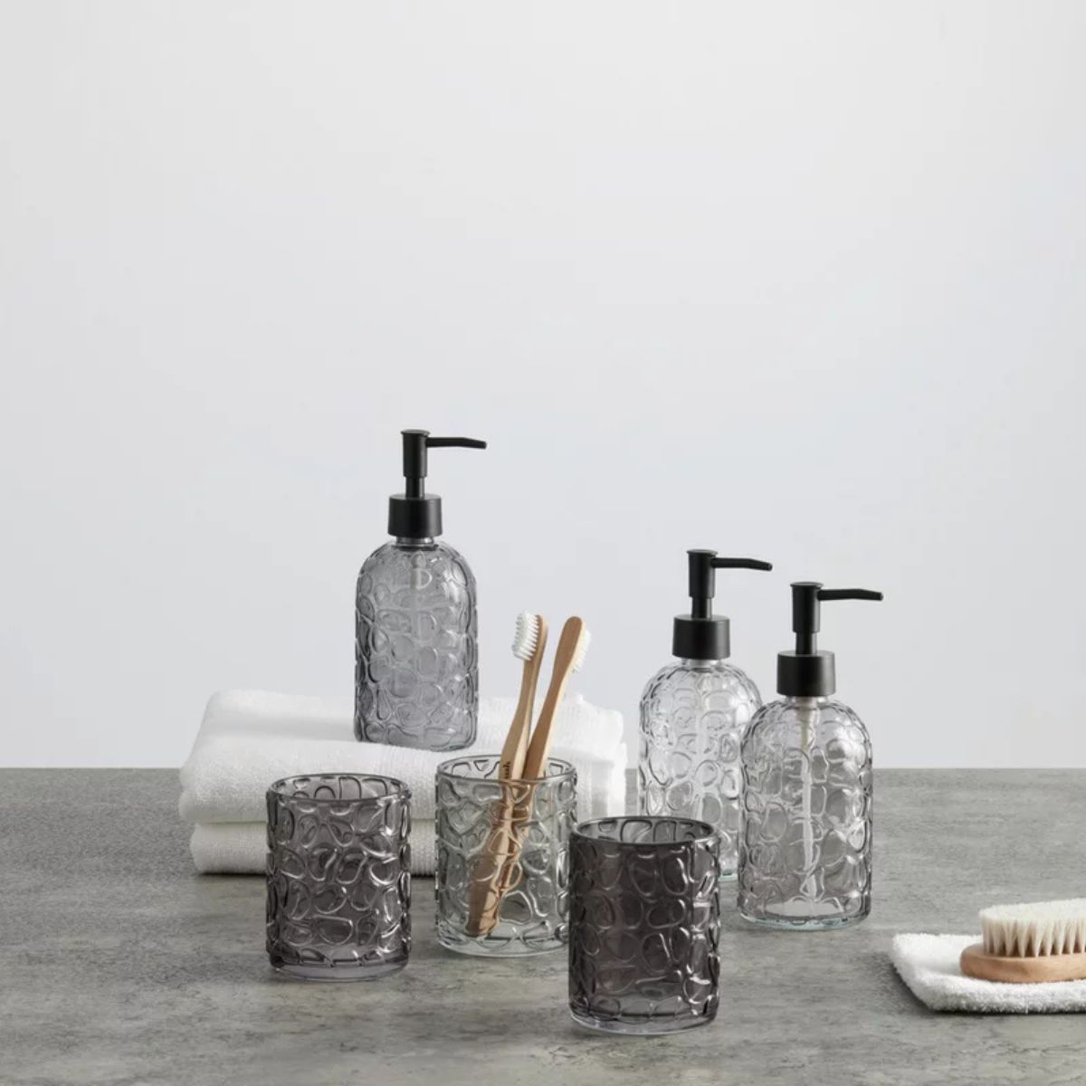 Το γυάλινο ποτήρι μπάνιου DAY (tumbler) είναι μια κομψή και πρακτική επιλογή για την οργάνωση του νιπτήρα. Η ανάγλυφη υφή του δίνει ιδιαίτερο χαρακτήρα και ταιριάζει εύκολα σε μοντέρνα ή minimal μπάνια.