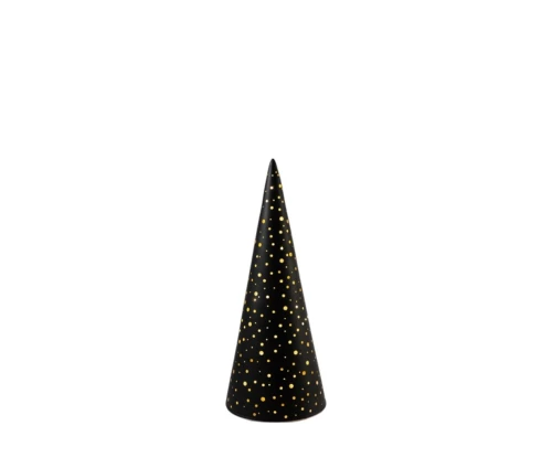 Δώστε λάμψη και κομψότητα στη γιορτινή σας διακόσμηση με το γυάλινο χριστουγεννιάτικο δέντρο LED σε μαύρο χρώμα με χρυσές διάτρητες λεπτομέρειες. Ο ζεστός φωτισμός LED διαχέεται μέσα από τα μικρά ανοίγματα, δημιουργώντας μια μαγική ατμόσφαιρα σε κάθε χώρο. Ιδανικό για το σαλόνι, το τζάκι, το κομοδίνο ή ακόμα και για επαγγελματικούς χώρους.