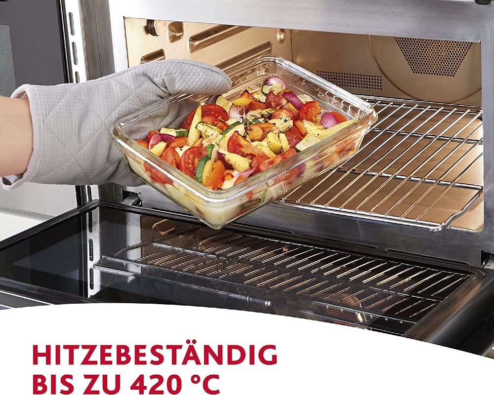 - Βέλτιστη προστασία ενάντια στον αποχρωματισμό και τις οσμές. Ιδανικό για φαγητά φούρνου (το γυάλινο σκεύος χωρίς το καπάκι)