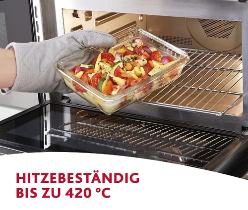 - Βέλτιστη προστασία ενάντια στον αποχρωματισμό και τις οσμές. Ιδανικό για φαγητά φούρνου (το γυάλινο σκεύος χωρίς το καπάκι)