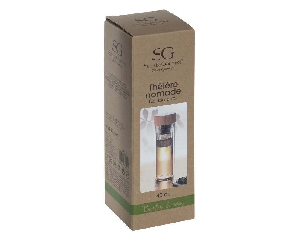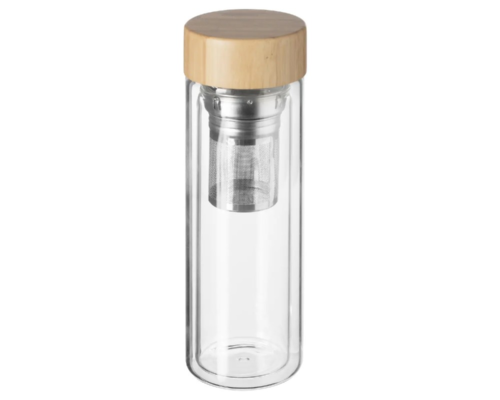 Γυάλινο ισοθερμικό δοχείο με καπάκι bamboo και ανοξείδωτο φίλτρο