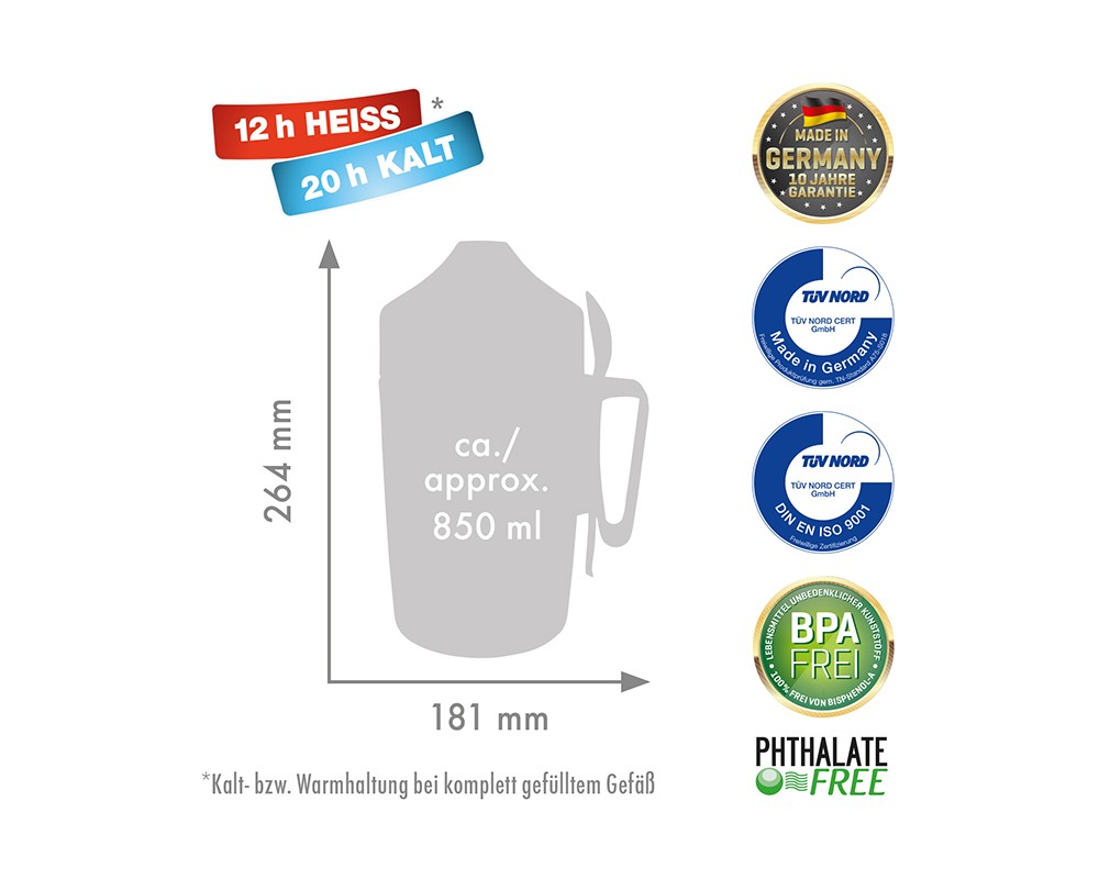 - Διατηρεί την θερμοκρασία 12 ώρες στο ζεστό και 20 ώρες στο κρύο! (οι μετρήσεις γίνονται με γεμάτο θερμός)