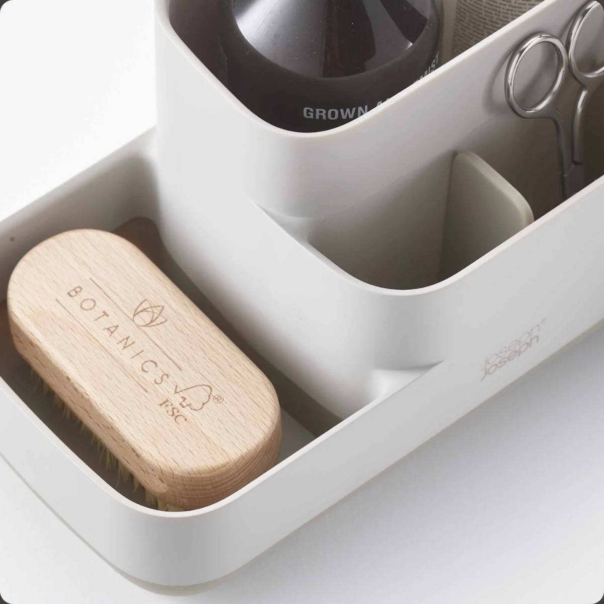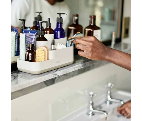 Βάλε τάξη στον πάγκο του μπάνιου με τη θήκη οργάνωσης Joseph Joseph EasyStore σε μπεζ (ecru). Ο συμπαγής σχεδιασμός της προσφέρει διαχωρισμένα διαμερίσματα ώστε να έχεις εύκολα τακτοποιημένα και άμεσα προσβάσιμα τα καθημερινά σου είδη περιποίησης.