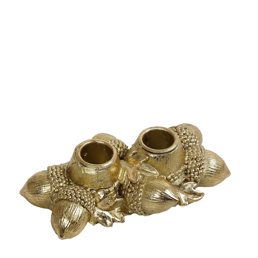 Φέρτε την ομορφιά και τη γαλήνη του δάσους στο σπίτι σας με αυτό το μοναδικό διπλό κηροπήγιο από την Espiel. Εμπνευσμένο από τους καρπούς της φύσης, ο σχεδιασμός του αγκαλιάζει τις δύο θέσεις των κεριών με περίτεχνα σκαλισμένα βελανίδια και φύλλα.