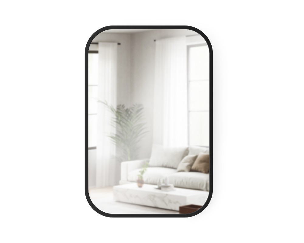 Με το μεγάλο του μέγεθος και την ανακλαστική του επιφάνεια, ο Hubba έχει την ιδιότητα να μεταμορφώνει οποιοδήποτε δωμάτιο, κάνοντάς το να φαίνεται αισθητά μεγαλύτερο και πιο φωτεινό. Το λεπτό, διακριτικό πλαίσιο σε μαύρο χρώμα προσθέτει μια μοντέρνα, γραφική πινελιά χωρίς να βαραίνει το σύνολο, επιτρέποντας στο σχήμα του καθρέπτη να πρωταγωνιστήσει.