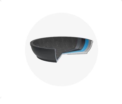- Αντικολλητική επίστρωση Durostone 4 επιστρώσεων: υψηλή ανθεκτικότητα στην χρήση και στις υψηλές θερμοκρασίες (άνω των 2600C)