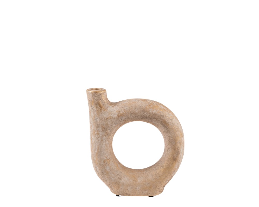 - Ένα μοναδικό διακοσμητικό στοιχείο που συνδυάζει την τέχνη με τη λειτουργικότητα. Το κεραμικό βάζο Zen Collection 51683 (19,5 x 6,5 x 22 εκ.) ξεχωρίζει για το αφαιρετικό, κυκλικό του σχήμα με ενσωματωμένο άνοιγμα στη μέση, θυμίζοντας σύγχρονο γλυπτό. Η γήινη υφή και οι φυσικές αποχρώσεις του ενισχύουν την αίσθηση ηρεμίας και ισορροπίας στον χώρο.