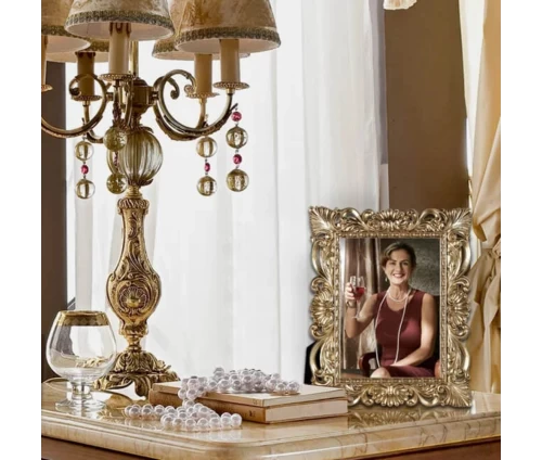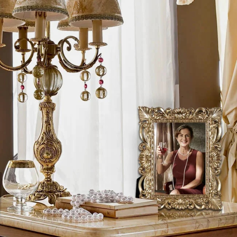 Η κορνίζα Baroque ξεχωρίζει για τον πλούσιο, διακοσμητικό της σχεδιασμό και το παλαιωμένο χρυσό φινίρισμα που αποπνέει αριστοκρατική κομψότητα.