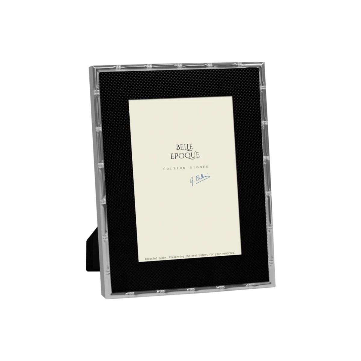 Η κορνίζα Belle Epoque αποτελεί κομψή και σύγχρονη επιλογή, συνδυάζοντας το ασημί φινίρισμα με το Velvet Noir για ένα εντυπωσιακό αποτέλεσμα. Κατασκευασμένη από μέταλλο υψηλής ποιότητας, προσφέρει αντοχή και διαχρονικό χαρακτήρα. Η βελούδινη πλάτη προστατεύει τις επιφάνειες, ενώ η δυνατότητα τοποθέτησης σε τραπέζι ή τοίχο την καθιστά ιδανική για κάθε χώρο, από καθιστικό έως γραφείο.
