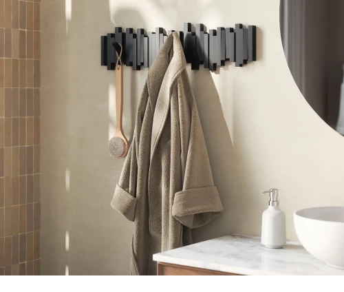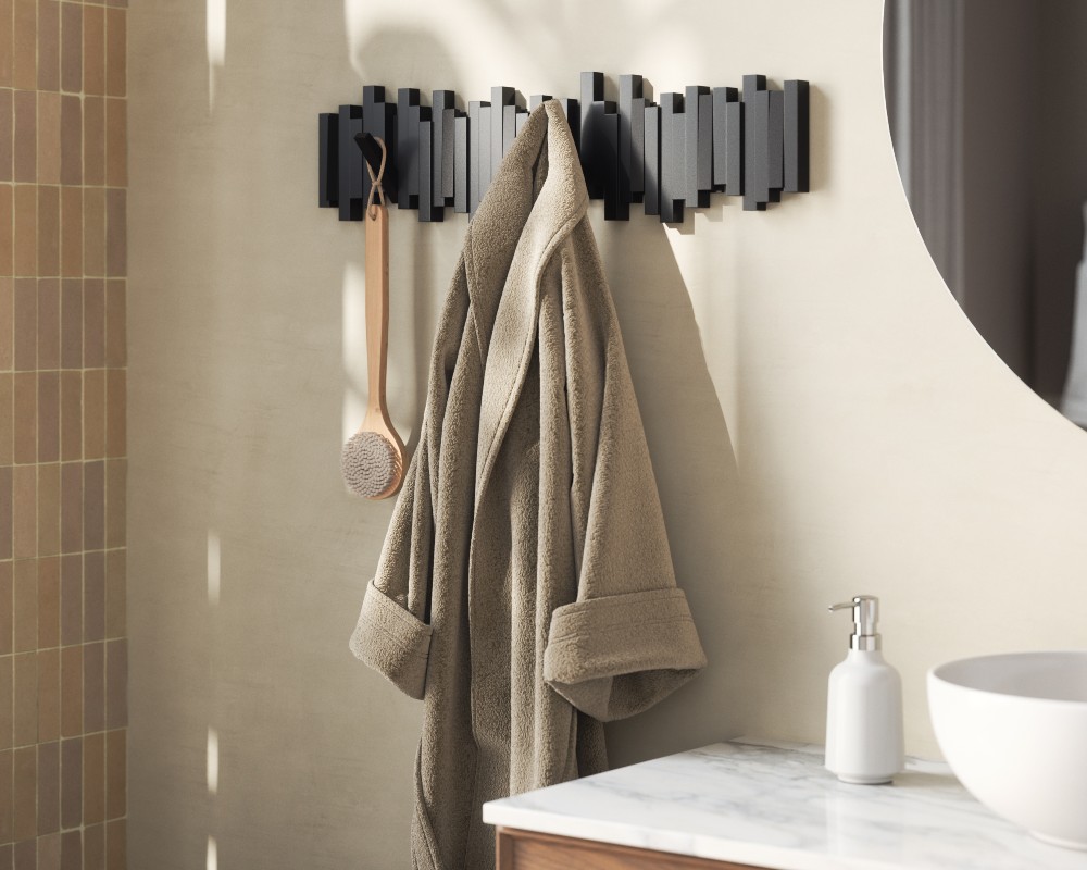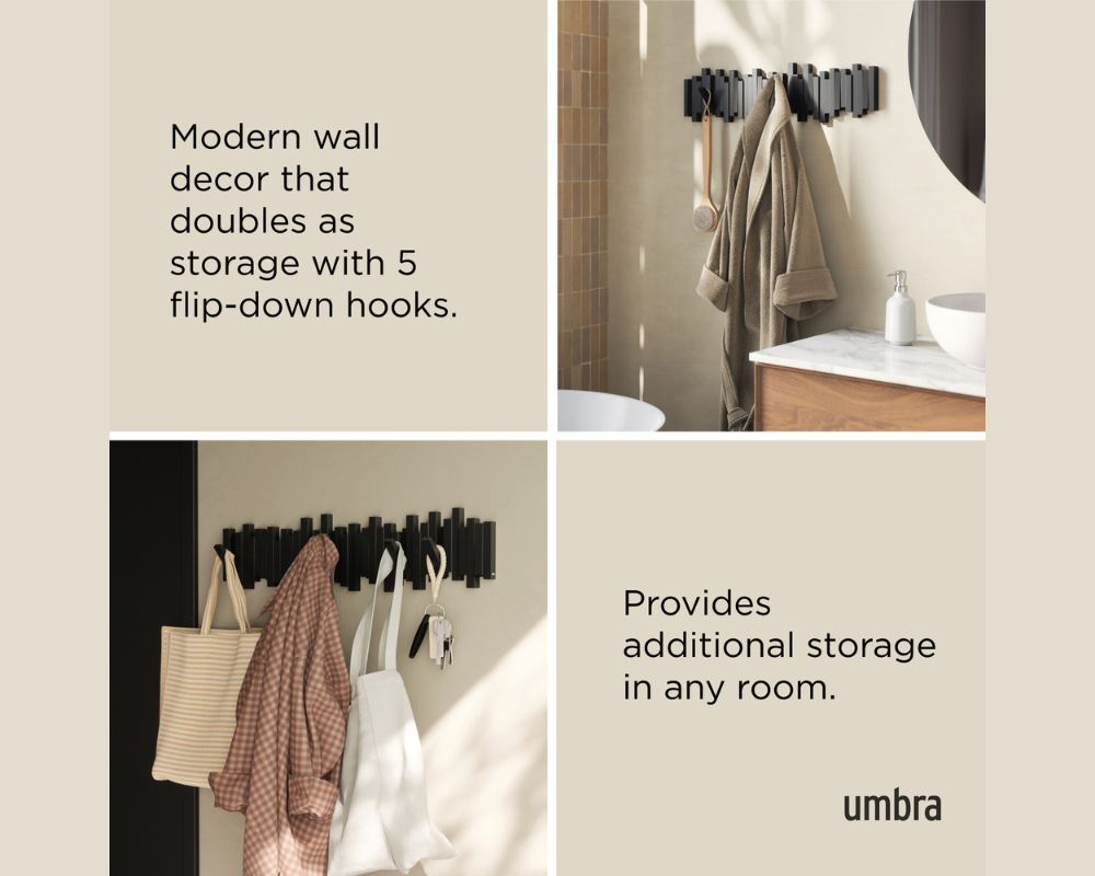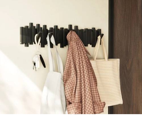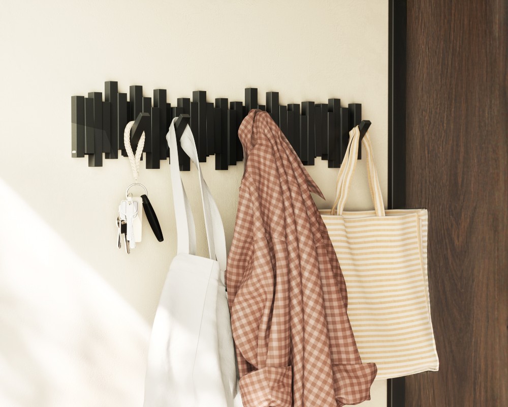 - Μοντέρνο Wall Art: Όταν οι γάντζοι είναι κλειστοί, η κρεμάστρα λειτουργεί ως ένα μίνιμαλ διακοσμητικό τοίχου.
