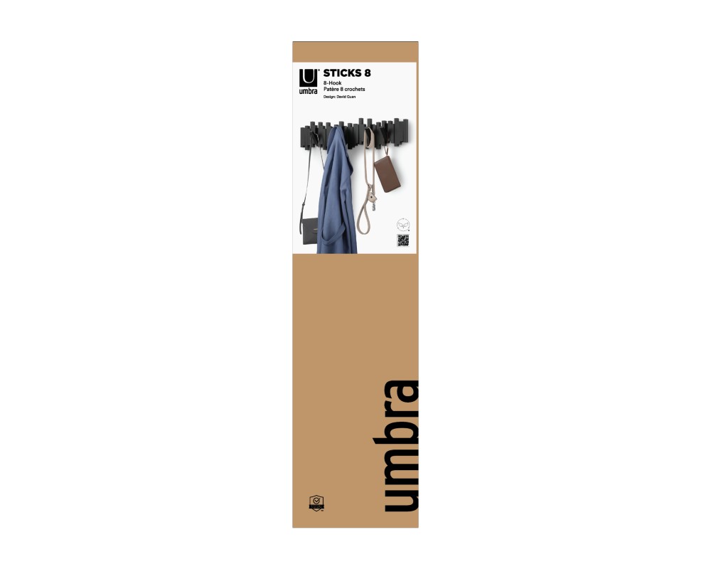 Οργανώστε την είσοδο, το υπνοδωμάτιο ή το γραφείο σας με στυλ, χρησιμοποιώντας την κρεμάστρα τοίχου Sticks 8 Hook από την Umbra. Αυτό το κομμάτι δεν είναι απλώς μια κρεμάστρα, αλλά ένα έργο μοντέρνας τέχνης για τον τοίχο σας.
