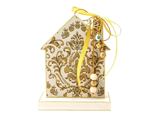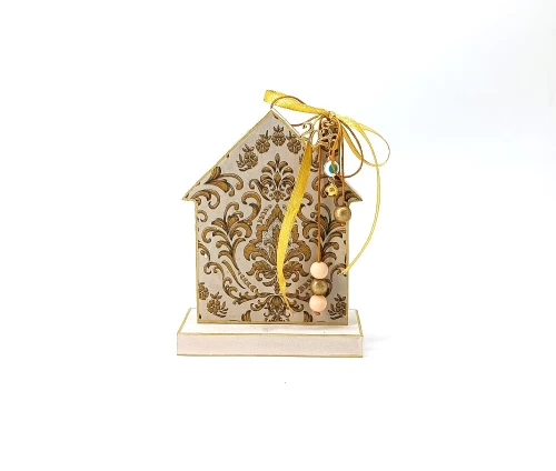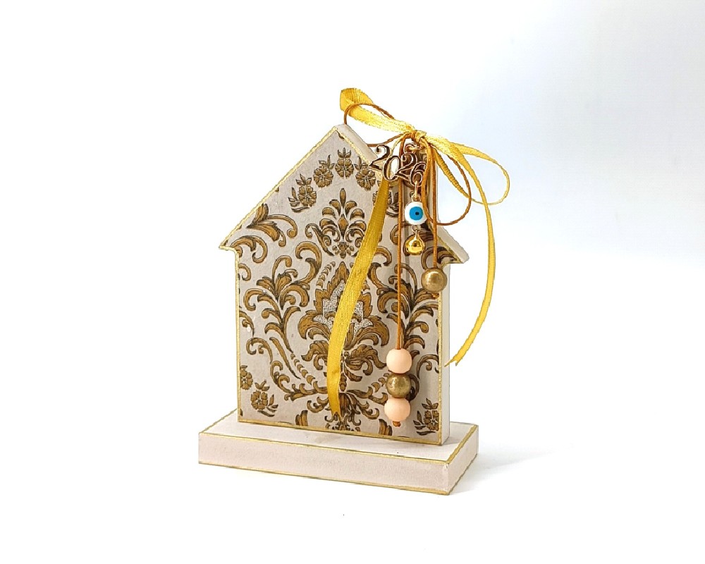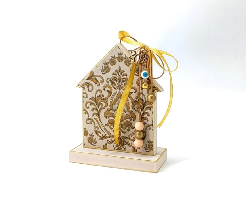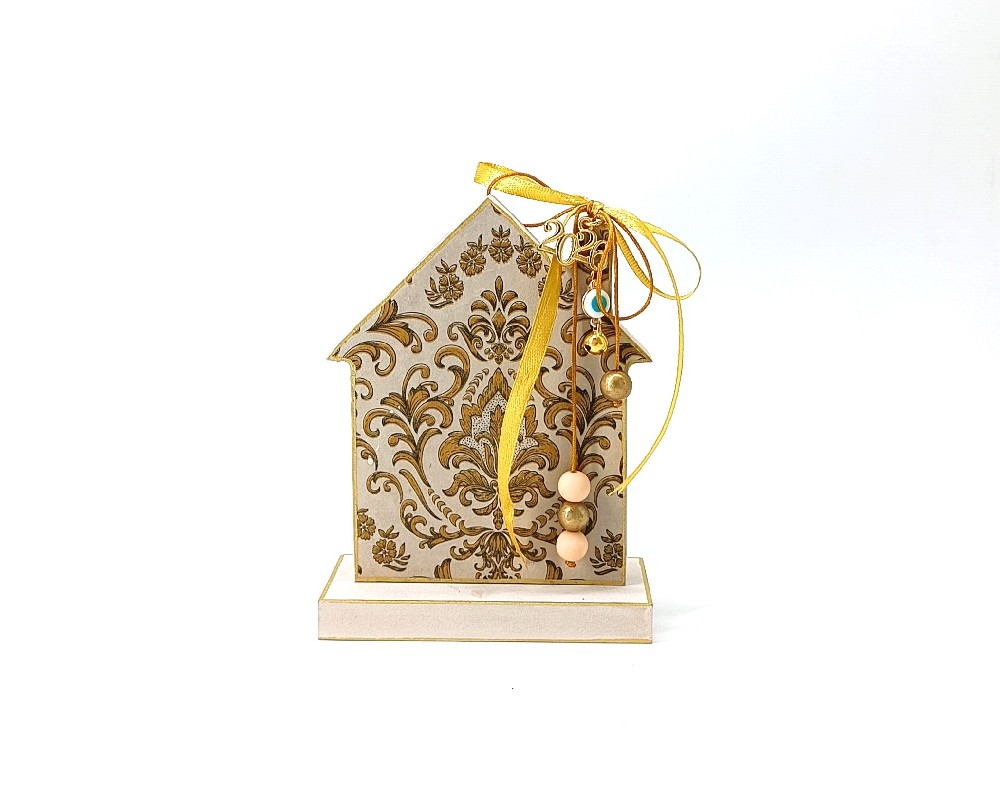 Το ξύλινο γούρι σπιτάκι KorresCraft είναι μια προσεγμένη χειροποίητη δημιουργία από MDF, φτιαγμένη στην Ελλάδα με την τεχνική decoupage. Οι χρυσές λεπτομέρειες, οι κορδέλες και οι χάντρες προσδίδουν μια κομψή και φωτεινή αισθητική.