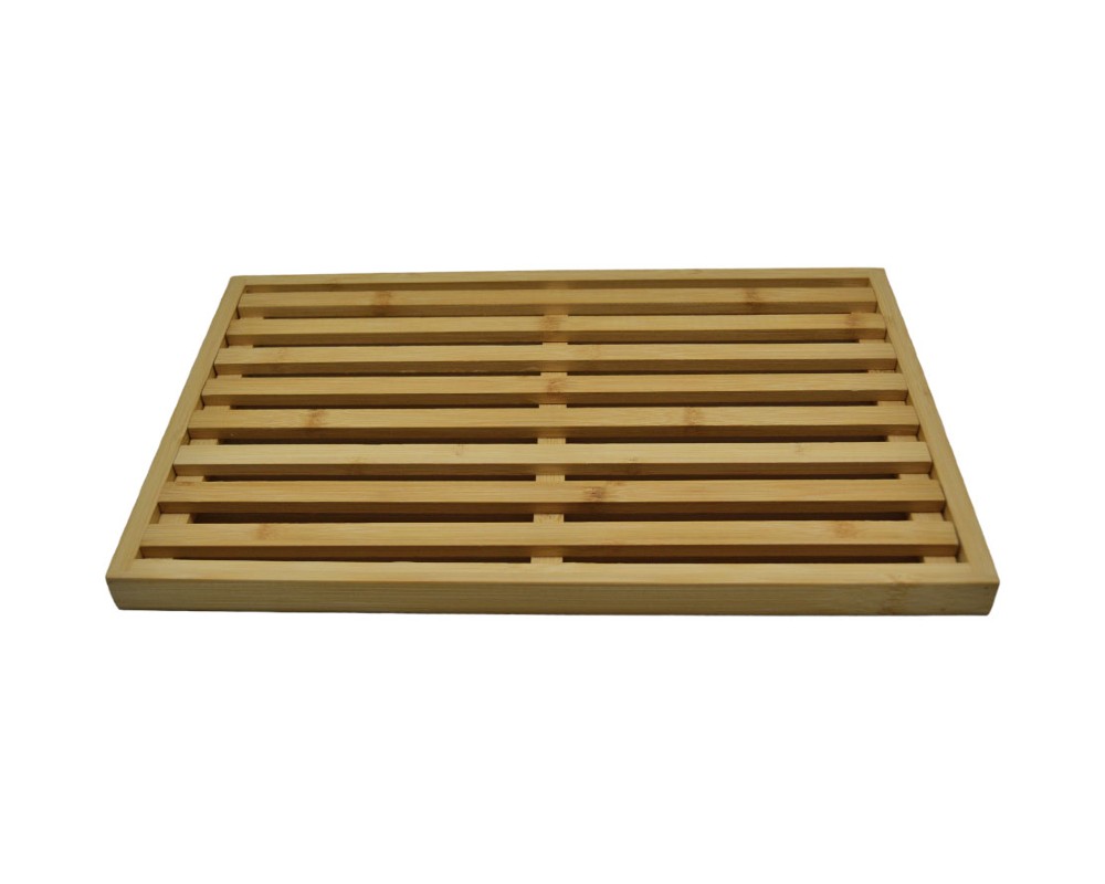 - Ξύλο κοπής ψωμιού από μπαμπού με ενσωματωμένη θήκη για τα ψίχουλα. Η θήκη διευκολύνει τη συγκέντρωση και την εύκολη απόρριψη των ψίχουλων, κρατώντας τον πάγκο σας καθαρό