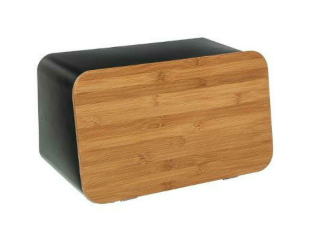 - Μεταλλική ψωμιέρα με καπάκι από ξύλο bamboo
