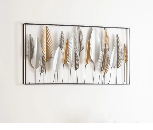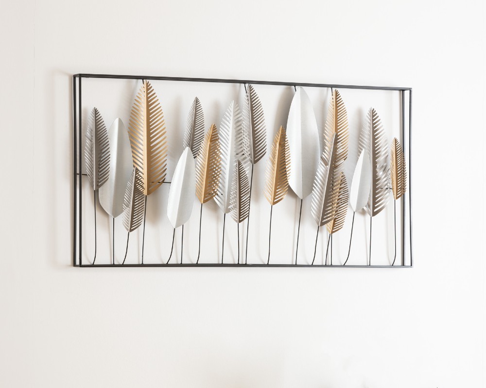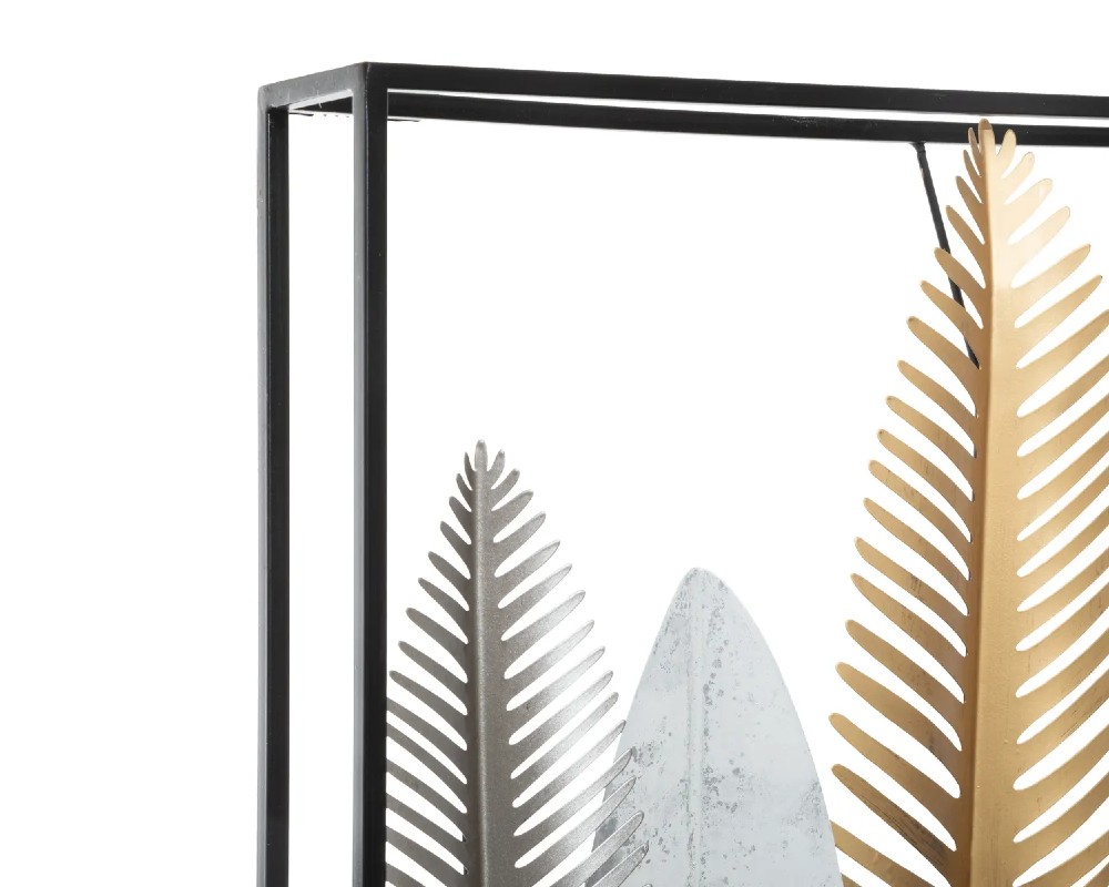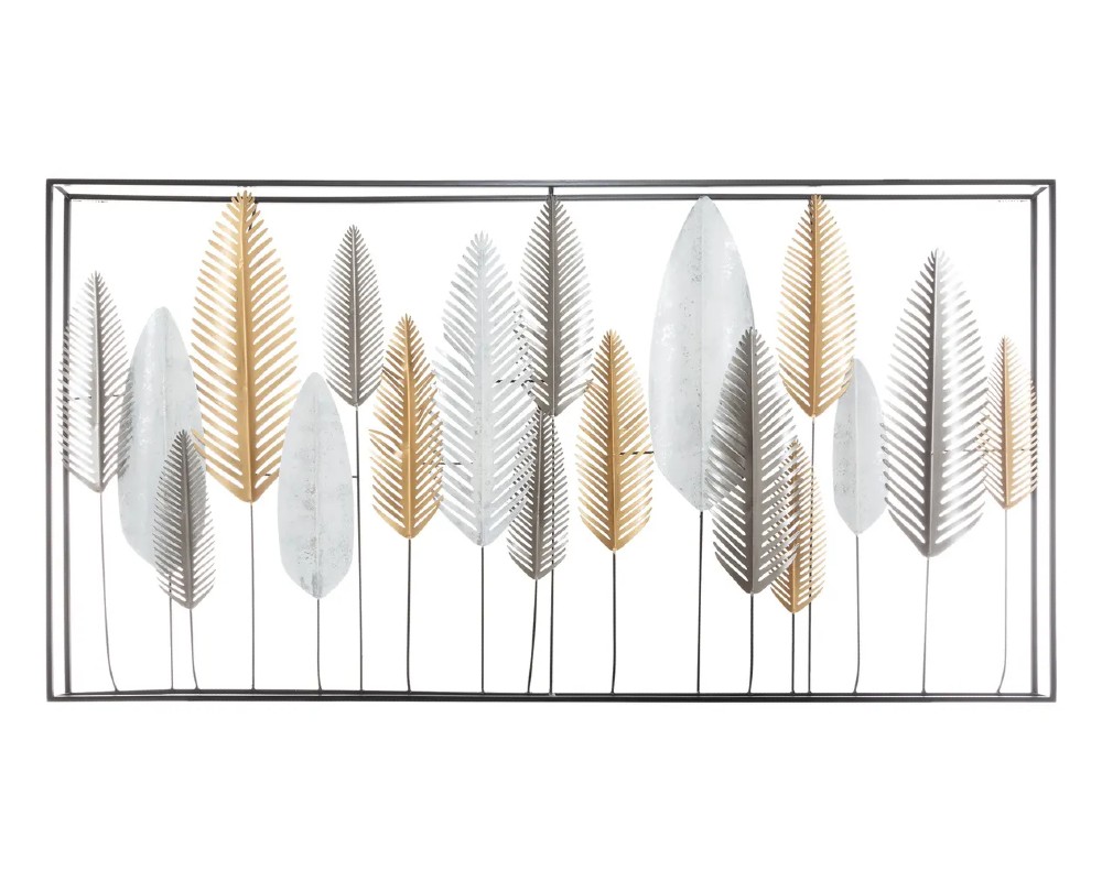 - Διακοσμητικό τοίχου με σχέδιο φύλλων. Είναι μεταλλικό σε ασημί και χρυσή απόχρωση με μαύρο σκελετό. Χαρίζει μοναδικό χαρακτήρα στον χώρο σας!