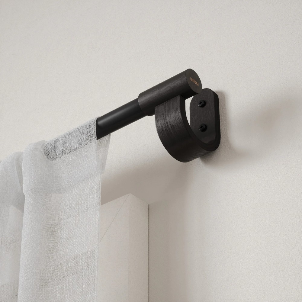 - Αποτελούμενο από μία ατσάλινη ράβδο σε μαύρο ματ και δύο ξύλινα στηρίματα τοίχου, το κουρτινόξυλο Ringlet συνδυάζει τη μοντέρνα με την βιομηχανική αισθητική, προσφέροντας ένα εντυπωσιακό αποτέλεσμα