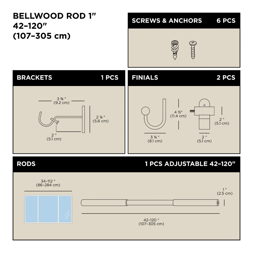 - Επεκτείνεται κατά μήκος από τα 107 μέχρι τα 305 εκατοστά και υποστηρίζει κουρτίνες βάρους έως 10 kg