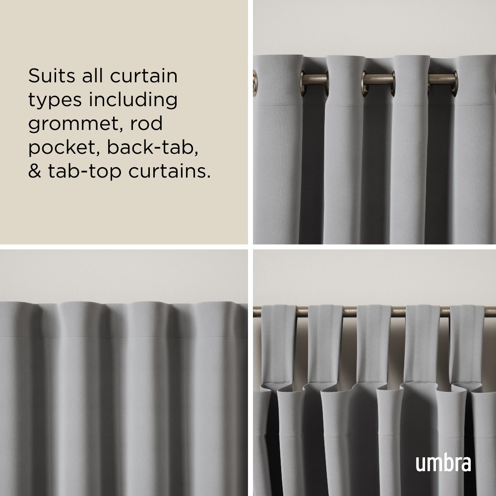 - Σε αντίθεση με άλλα κουρτινόξυλα που τείνουν να λυγίζουν ή να παραμορφώνονται με την πάροδο του χρόνου, κάθε κουρτινόξυλο της εταιρείας Umbra υπόκειται σε αυστηρό ποιοτικό έλεγχο κατά τη διάρκεια της παραγωγής καθώς και μετά την παραγωγή.