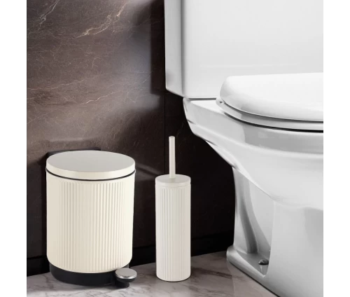 - Κάδος απορριμμάτων μεταλλικός στρογγυλός σε εκρού χρώμα με ματ φινίρισμα και καπάκι με αυτόματο κλείσιμο