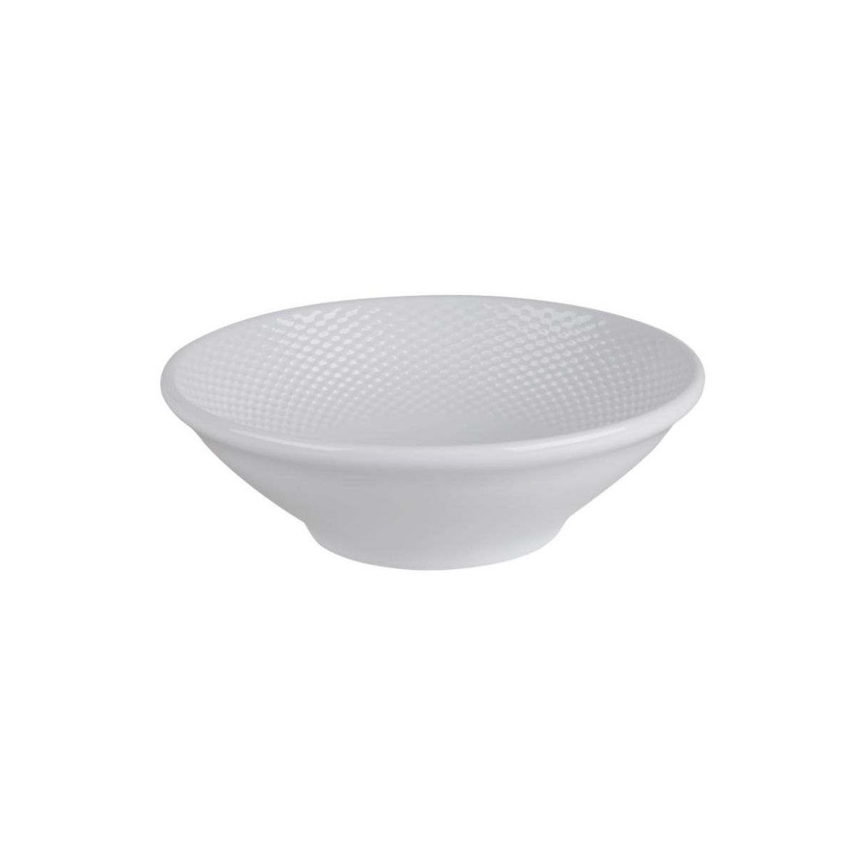 Κατασκευασμένο από λευκή πορσελάνη, ξεχωρίζει για το διακριτικό ανάγλυφο μοτίβο στο εσωτερικό του, που δίνει υφή και μοντέρνα αισθητική στο τραπέζι. Το καθαρό λευκό του χρώμα αναδεικνύει όμορφα κάθε σερβίρισμα και συνδυάζεται εύκολα με διαφορετικά πιάτα, μαχαιροπίρουνα και στυλ τραπεζιού.