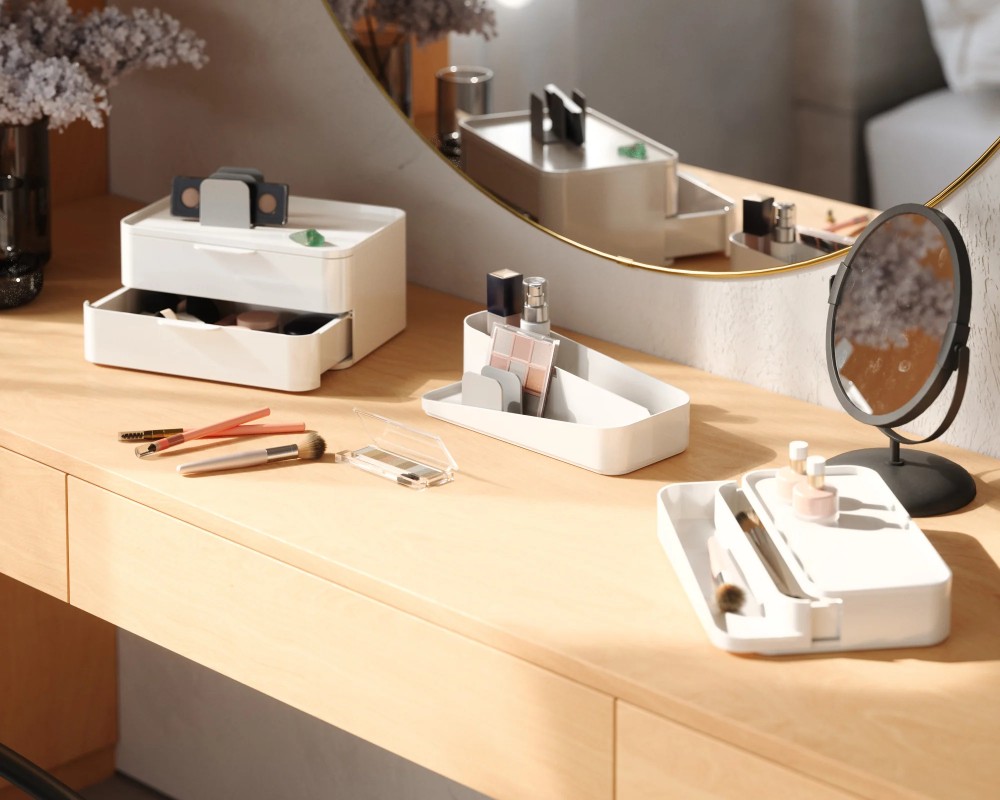 - Διαθέτει τρία συρτάρια για μέγιστη οργάνωση και μπορεί να χρησιμοποιηθεί για τα πάντα, από μακιγιάζ και περιποίηση δέρματος έως αξεσουάρ γραφείου.
