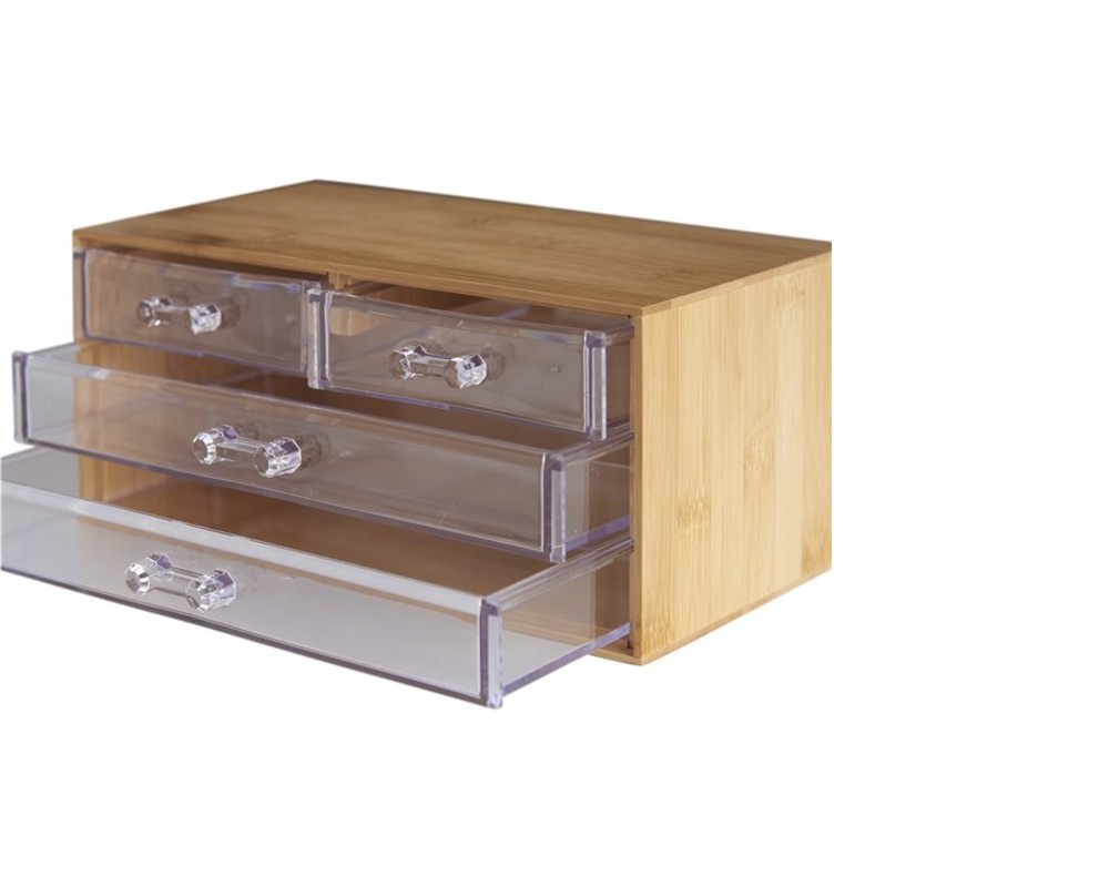 - Σκελετός από ξύλο bamboo και 4 συρταράκια από πολυεστερικό πλαστικό