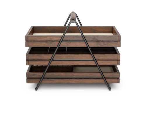 - Μαύρος μεταλλικό σκελετός και 3 ξύλινα συρταράκια σε χρώμα καρυδιάς