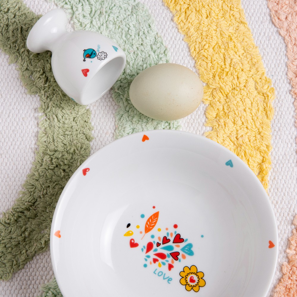 - Το σετ περιλαμβάνει: πιάτο φαγητού παιδικό (19,5 εκ.), μπολ (16 εκ.), κούπα και αυγοθήκη