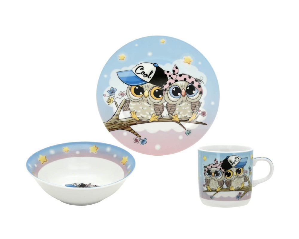 - Το σετ περιλαμβάνει ένα πιάτο 17,5εκ. ένα μπολ 15x6εκ. & μία κούπα χωρητικότητας 230ml