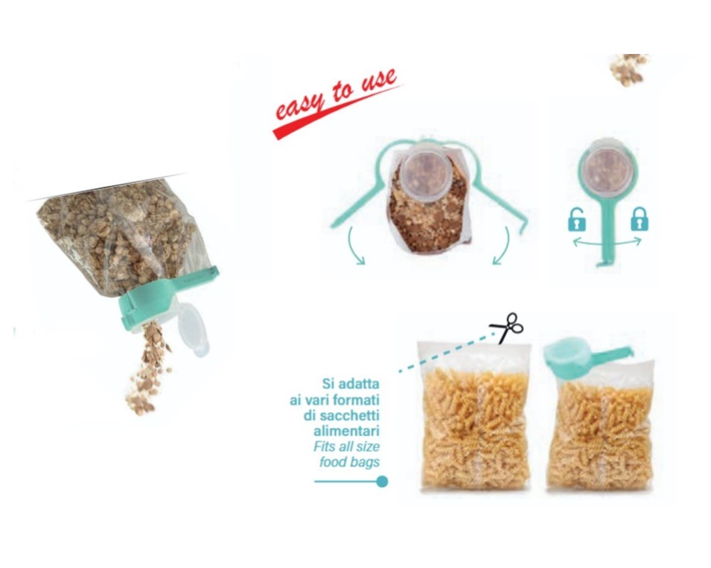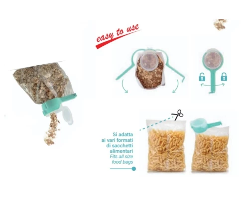 - Αυτό το μοναδικό gadget όχι μόνο σφραγίζει αεροστεγώς τις σακούλες σας, διατηρώντας το περιεχόμενό τους φρέσκο για περισσότερο καιρό, αλλά διαθέτει και ένα πρακτικό καπάκι-δοσομετρητή. Πλέον, μπορείτε να σερβίρετε δημητριακά, ρύζι, όσπρια ή καφέ απευθείας από τη σακούλα, χωρίς να ανοίγετε όλη τη συσκευασία και χωρίς να δημιουργείτε ακαταστασία στον πάγκο σας.