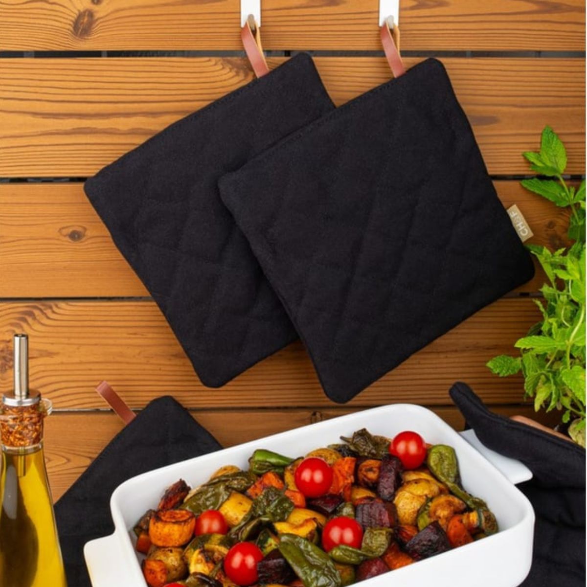 Αναβαθμίστε τον εξοπλισμό σας για τον φούρνο αλλά και την ψησταριά με την ενισχυμένη πιάστρα της σειράς CHEF BBQ από τη βελγική Finesse. Όπως αναφέρει και το μότο της εταιρείας: Με νόστιμα υλικά, premium υφάσματα κουζίνας και πολύ μεράκι, θα δημιουργήσετε μαγικά πιάτα. Relax, there's a chef in the house! Στην κλασική μαύρη απόχρωση, είναι ο απόλυτος σύμμαχος ενάντια στους λεκέδες και τις υψηλές θερμοκρασίες.