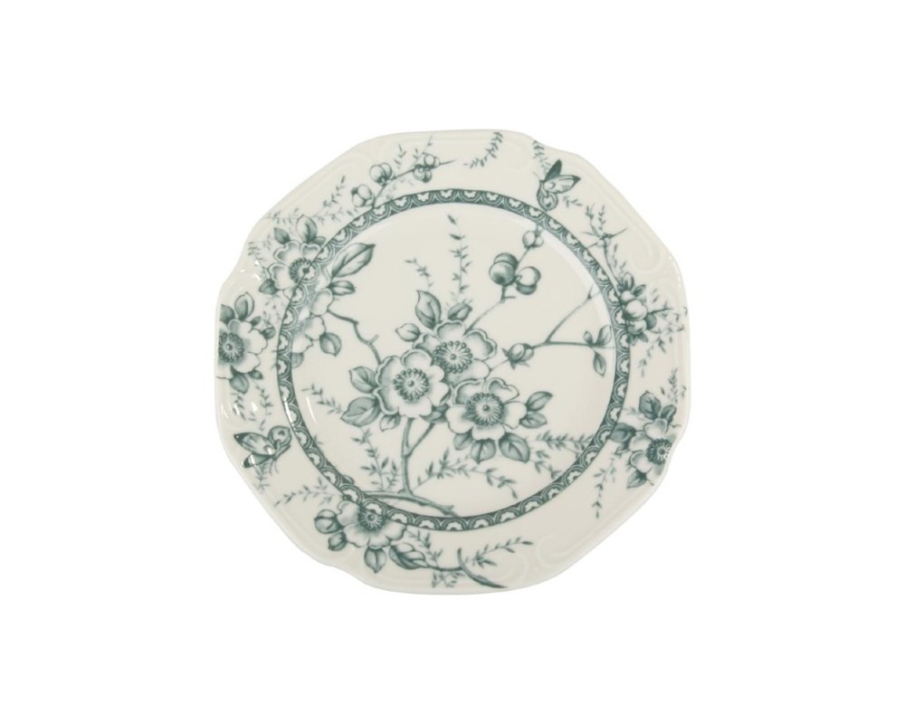 Το κομψό φλοράλ μοτίβο σε απαλές, φυσικές αποχρώσεις του πράσινου, αποτυπώνεται με χάρη πάνω στην πορσελάνη, δημιουργώντας μια αίσθηση γαλήνης και φινέτσας. Με διάμετρο 20 εκ., είναι ιδανικό για να αναδείξει τη φρεσκάδα των φρούτων, την πλούσια υφή ενός γλυκού ή το χρώμα ενός εκλεκτού ορεκτικού. Η χαρακτηριστική οκταγωνική περίμετρος της συλλογής προσθέτει μια νότα διαχρονικού στυλ.