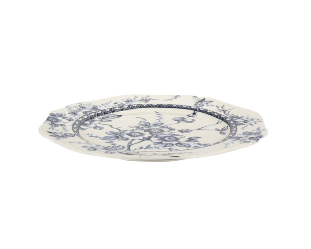 Κατασκευασμένο από εκλεκτή, ανθεκτική πορσελάνη, φέρει το εμβληματικό μπλε φλοράλ μοτίβο που χαρακτηρίζει τη συλλογή. Η κομψότητα του σχεδίου, σε συνδυασμό με την ελαφρώς κυματιστή, οκταγωνική περίμετρο, προσδίδει μια αίσθηση διαχρονικής πολυτέλειας, κατάλληλη για κάθε περίσταση, από το καθημερινό γεύμα μέχρι το πιο επίσημο δείπνο.