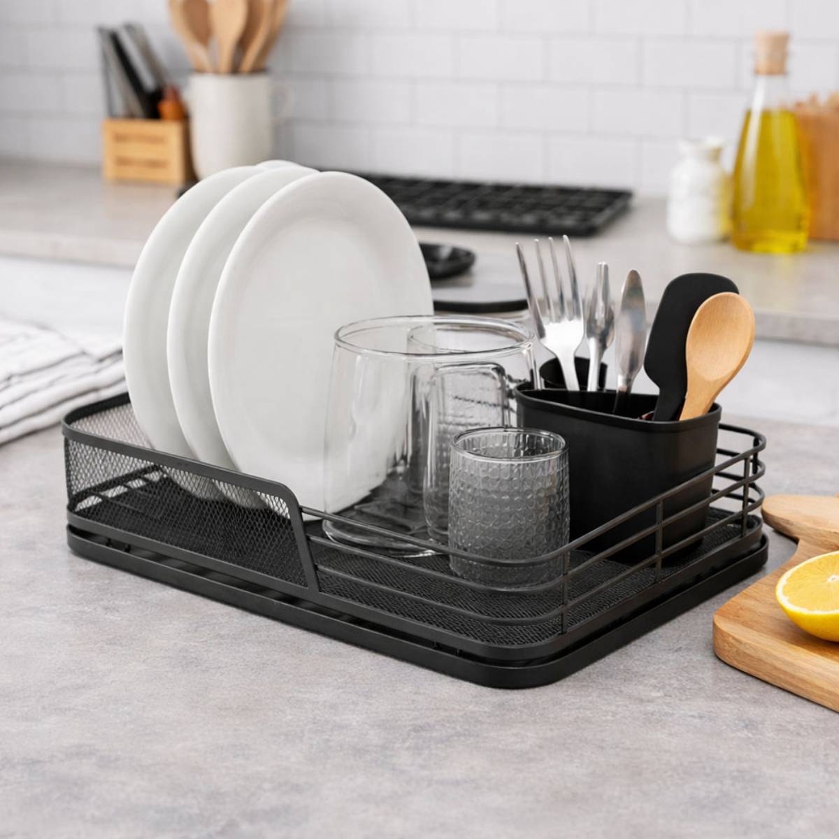 Κρατήστε τον πάγκο της κουζίνας σας οργανωμένο και καθαρό, με την μεταλλική πιατοθήκη Ankor 850242 σε μαύρο ματ. Η ανθεκτική μεταλλική κατασκευή προσφέρει σταθερότητα στην καθημερινή χρήση, ενώ ο πλαστικός δίσκος αποστράγγισης συγκρατεί τα νερά και καθαρίζεται εύκολα.