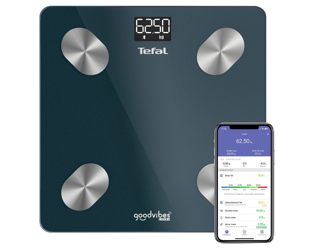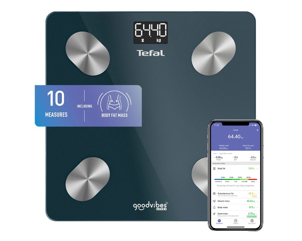 - Μπορείς να βλέπεις εύκολα την πρόοδό σου χάρη στους ευανάγνωστους πίνακες που είναι διαθέσιμοι στη δωρεάν εφαρμογή για το κινητό. Συνδέσου με Bluetooth όρισε τους στόχους σου για το σωματικό βάρος και λίπος, και θα σε βοηθήσει να επιτεύξεις θετικά αποτελέσματα.