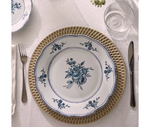 Το ντελικάτο μπλε floral μοτίβο, που θυμίζει βοτανικές εκτυπώσεις, απλώνεται αρμονικά πάνω στην πάλλευκη, λαμπερή πορσελάνη. Το "Heritage Florals" είναι η τέλεια επιλογή για να δημιουργήσετε μια ατμόσφαιρα γαλήνης και εκλεπτυσμένης φιλοξενίας, ιδανικό τόσο για επίσημα δείπνα όσο και για να προσθέσετε μια δόση πολυτέλειας στην καθημερινότητά σας.