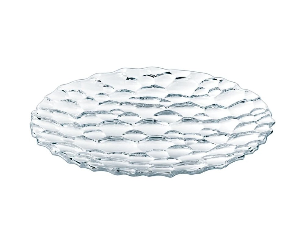 Τα πιάτα διακρίνονται για τη λαμπερή διαύγεια, την εξαιρετική αντοχή και το ανάγλυφο μοτίβο που δημιουργεί υπέροχα παιχνίδια φωτός στο τραπέζι. Είναι ιδανικά για σερβίρισμα γλυκών, φρούτων, ορεκτικών ή για χρήση ως εντυπωσιακό πιάτο παρουσίασης.